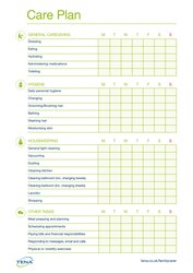 Even though a carer is responsible for its execution, a care plan is the result of cooperation between healthcare professionals, relatives, other caregivers and, if this is possible, the person who will receive care. Our care plan template was created to make this task easier. If you have questions on any aspect of caring and your responsibilities, we recommend reading Sharing the caring. It’s also good to work with your support team when preparing your caregiving plan. Then you can decide on who will do what and when.